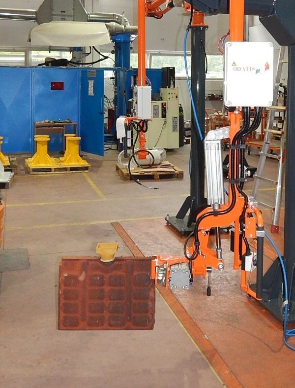 Manipolatore industriale a colonna disassata ATISmirus 100 con pinza pneumatica per blocchi sabbia in fonderia R140210