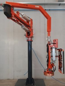 Il bilanciatore di peso modello ATISmirus 300 è un sollevatore di carico ad azionamento pneumatico completato da un attrezzo di presa a ventose che permette di movimentare bobine in rame di diversi pesi e diametro.