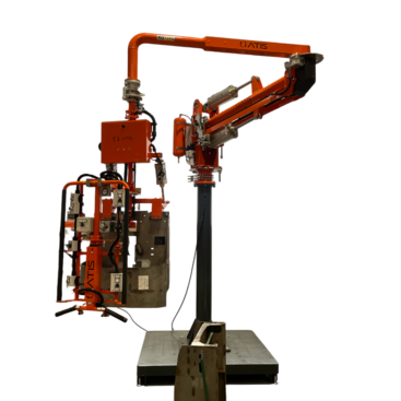 ATIS manipulators with articulated rigid arms and parallelogram belong to ATISmirus series, designed specifically for handling offset loads. The safe lifting capacity goes up to a maximum of 600kg (1323 lbs). They can be supplied with different bespoke gripping tools such as gripping jaws, suction tools, magnets, and hook units. They could also be equipped with manual and pneumatically powered rotation and/or inclination.