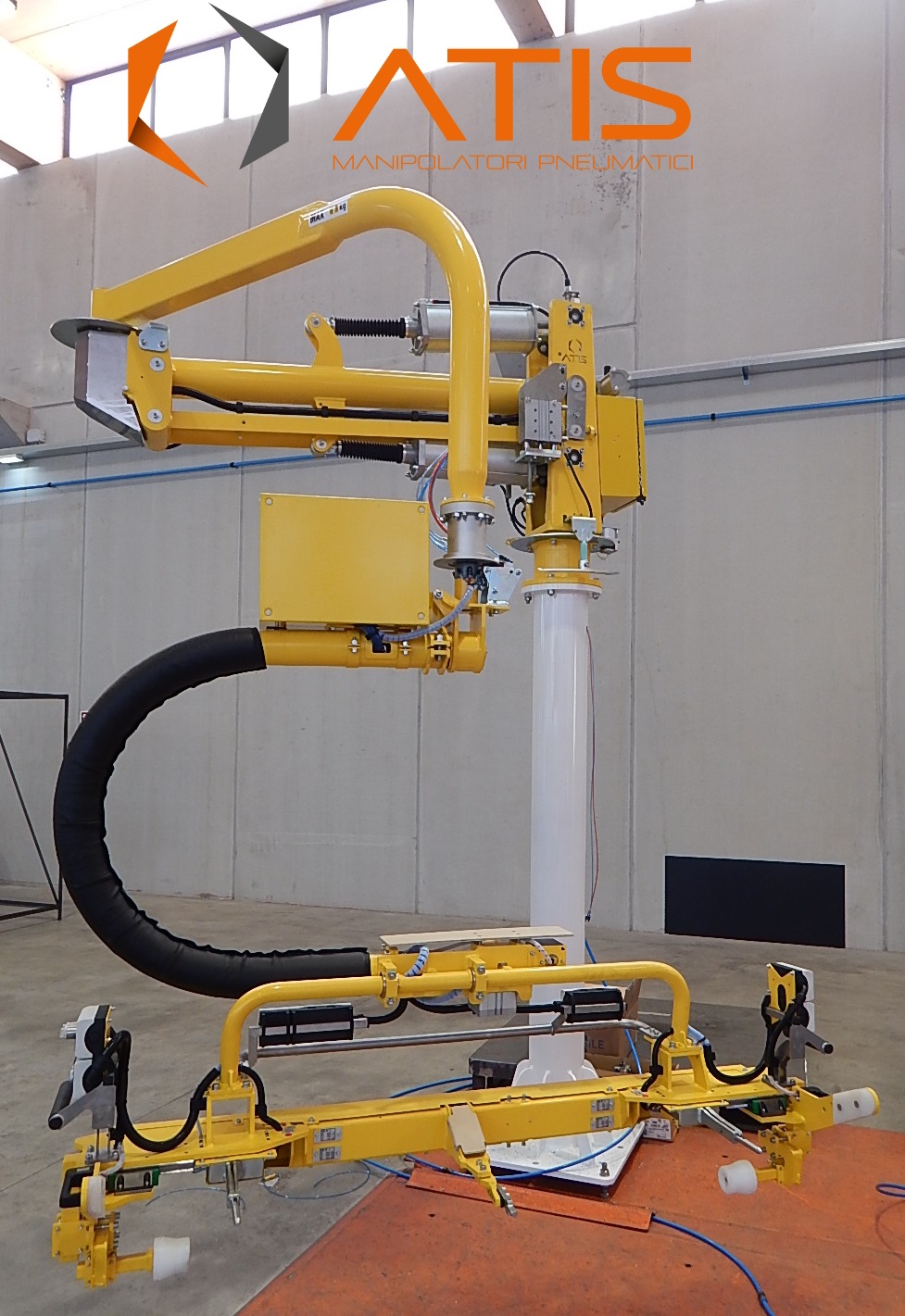 Пневматический манипулятор ATIS, оснащенный специальным приспособлением с присосками, позволяет загружать и выгружать большие ...